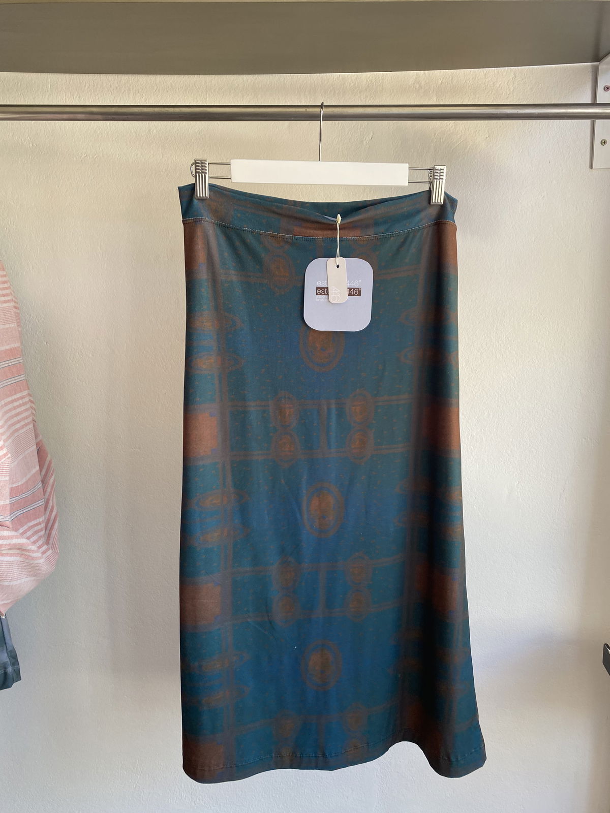 Falda larga confeccionada en modal soft, un tejido liviano, suave y con caída fluida. Su estampa realizada por sublimación aporta profundidad y detalle sin afectar la suavidad de la tela. Tiene un movimiento natural y cómodo, pensada para acompañar el cuerpo con una silueta limpia y relajada.