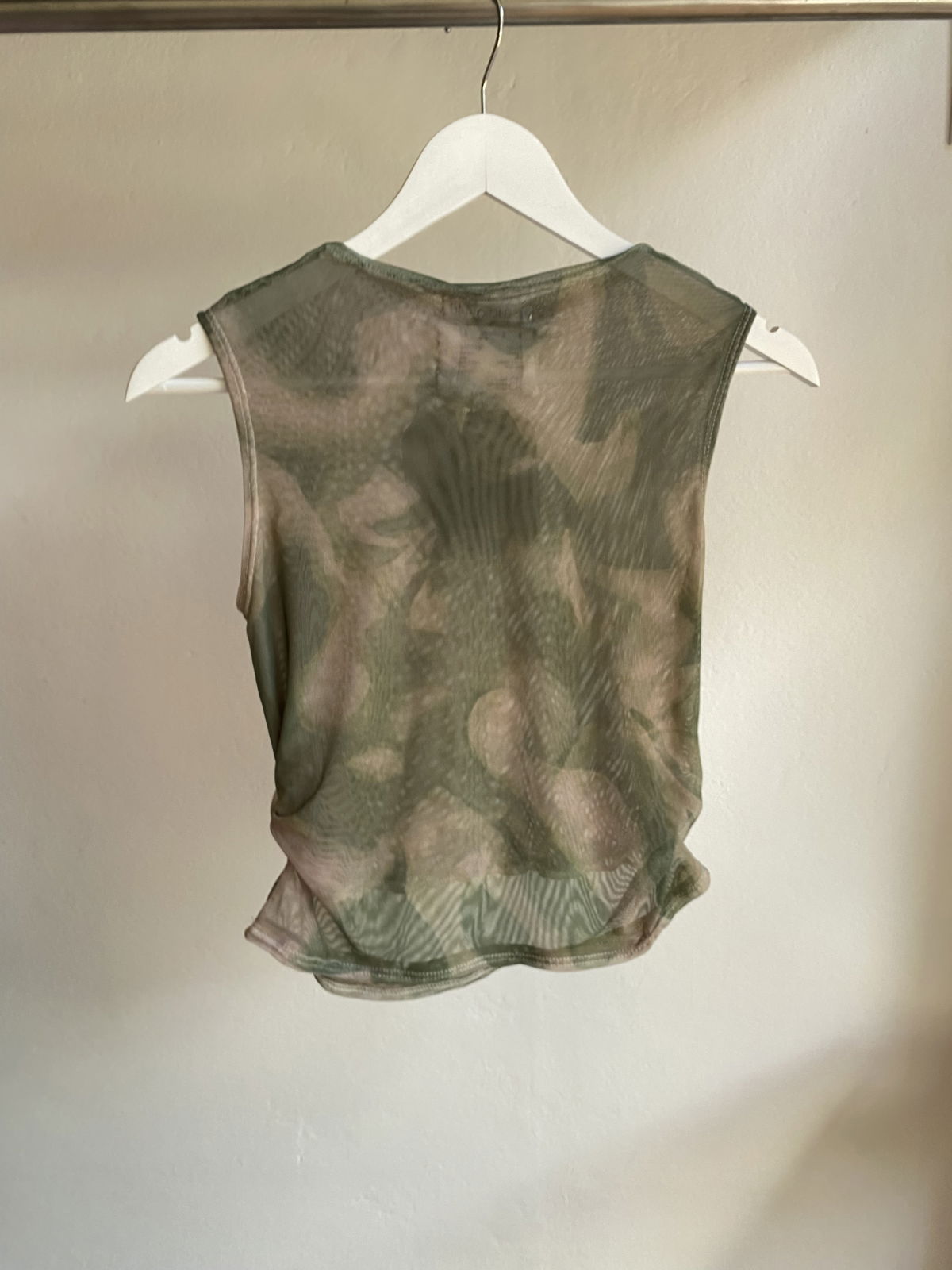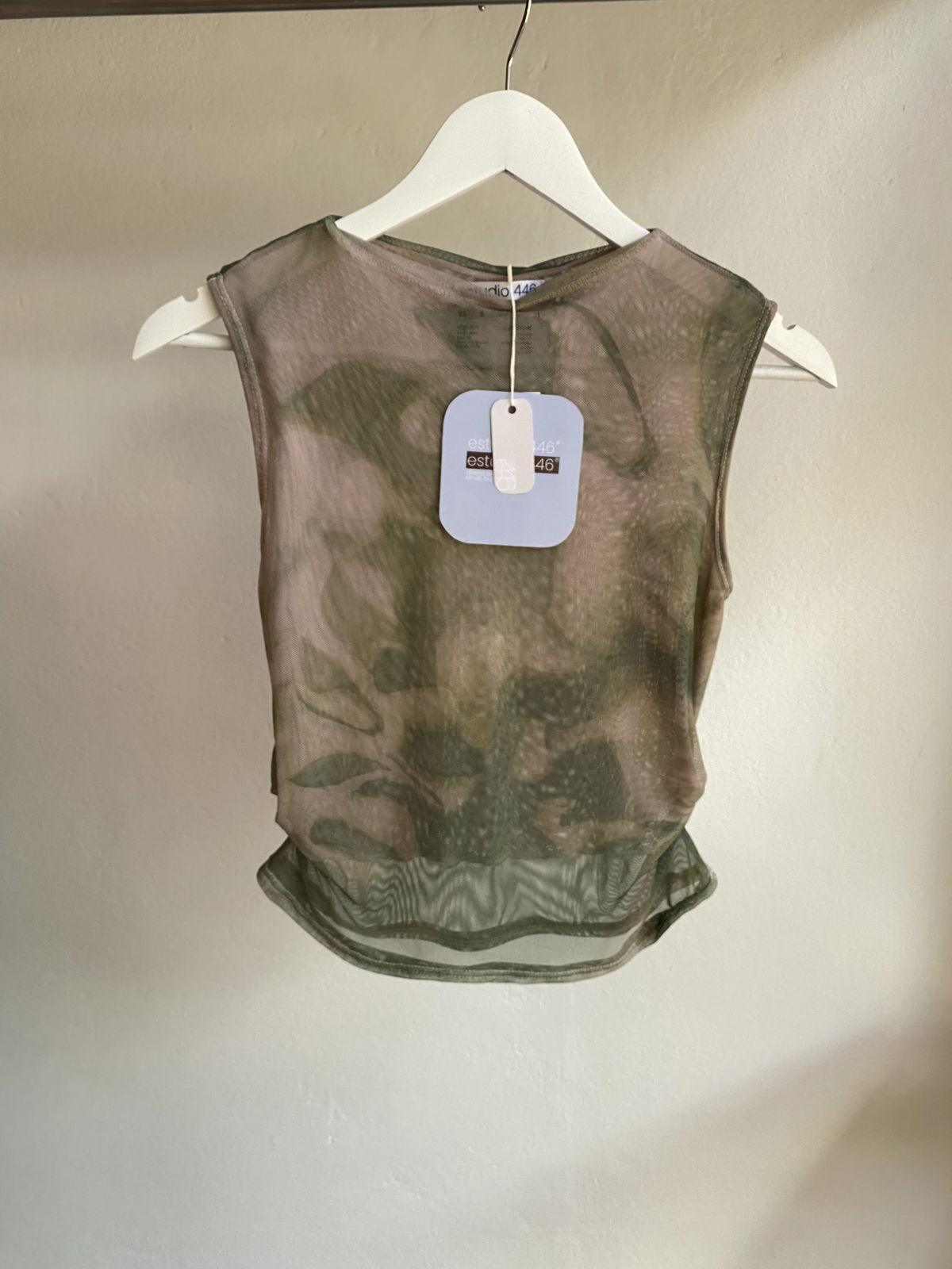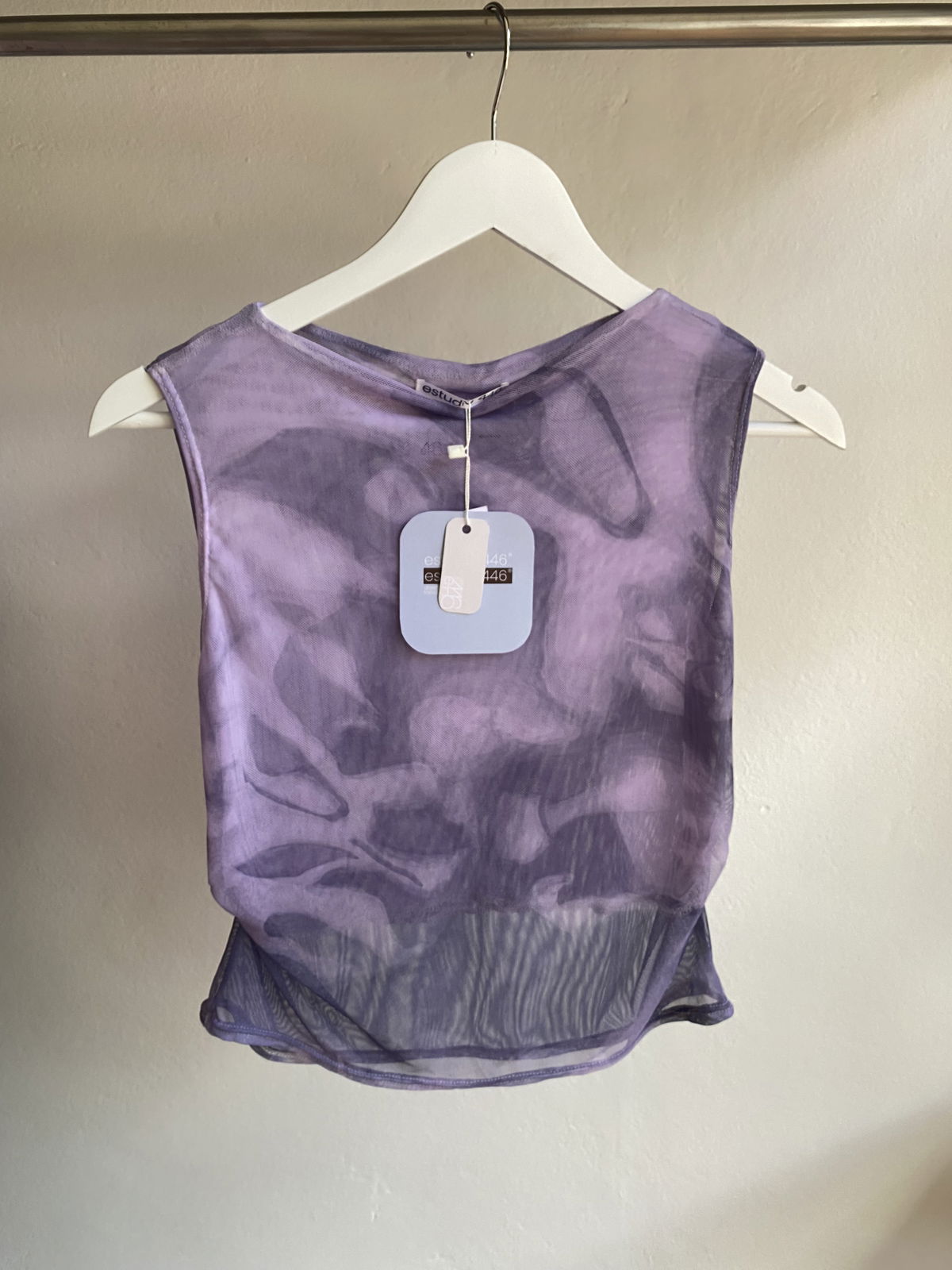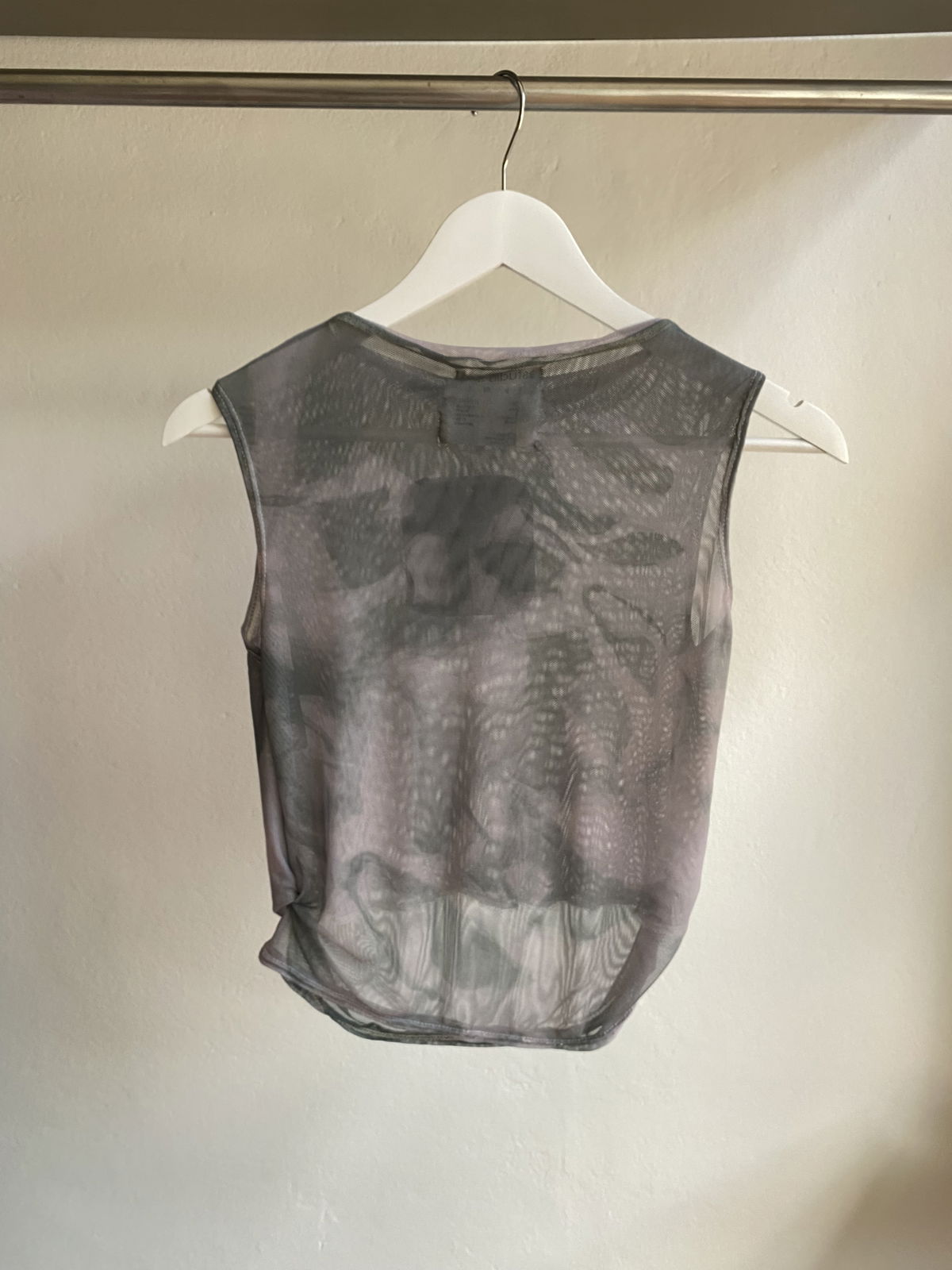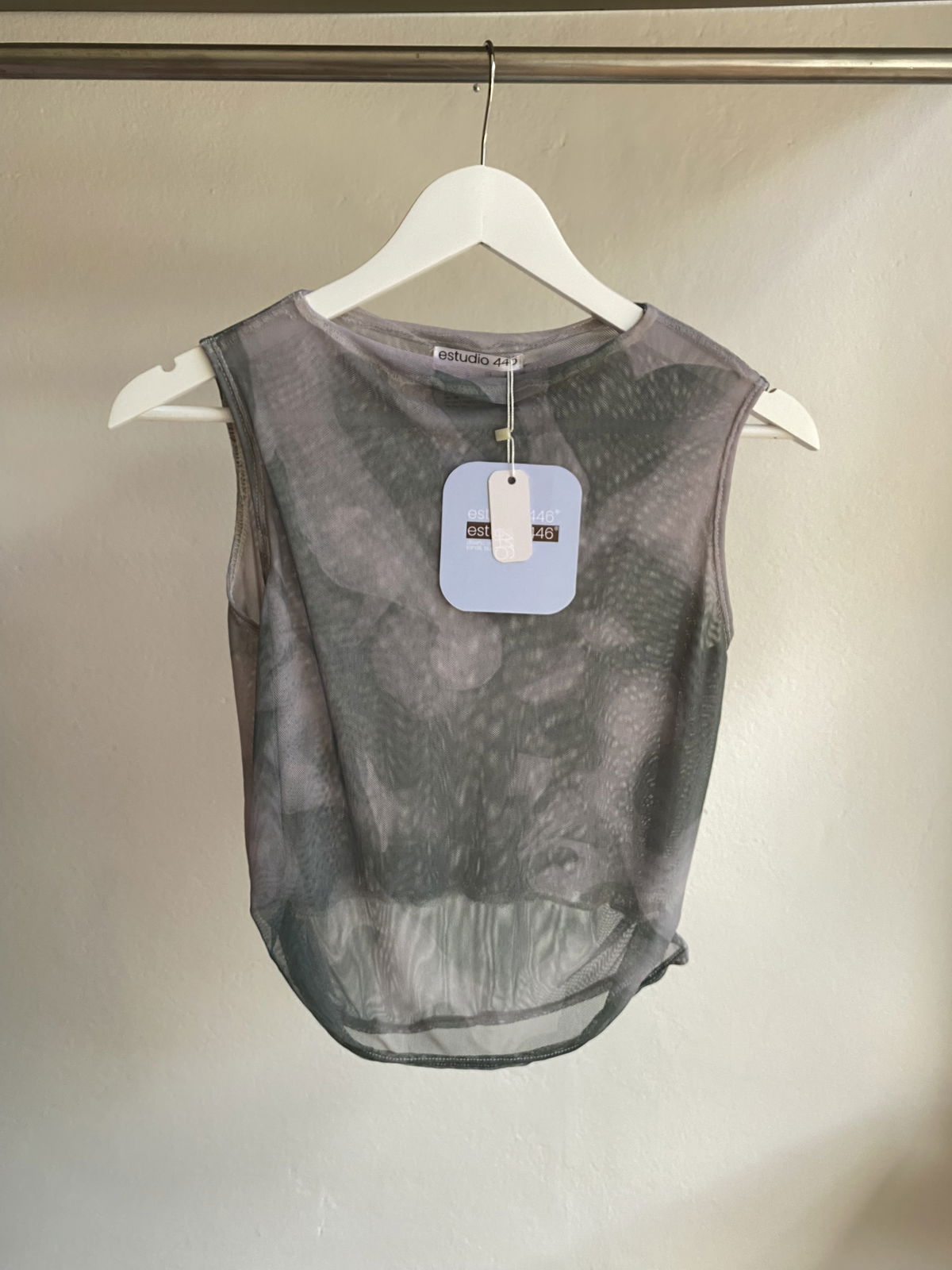 Musculosa liviana de microtul doble, suave y adaptable al cuerpo. La estampa, diseñada por el estudio y transferida al textil por sublimación, aporta textura y profundidad visual.